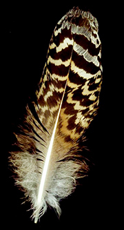 鷹は俊敏で勇猛な性質から、また矢羽根として用いられたことから、武人の象徴として親しまれており、文様では鷹そのものではなく、羽のみを使用している。