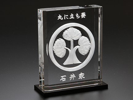 家紋の彫刻は2Dガラス内部レーザーで行い、