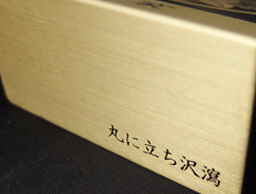 家名の他に記念の文言や日付の名入れにも ご対応できますので、飾り方や使い方は工夫次第です。 ●真鍮腐食凹黒1色、半つや消しクリア仕上げ ●地粗し黒