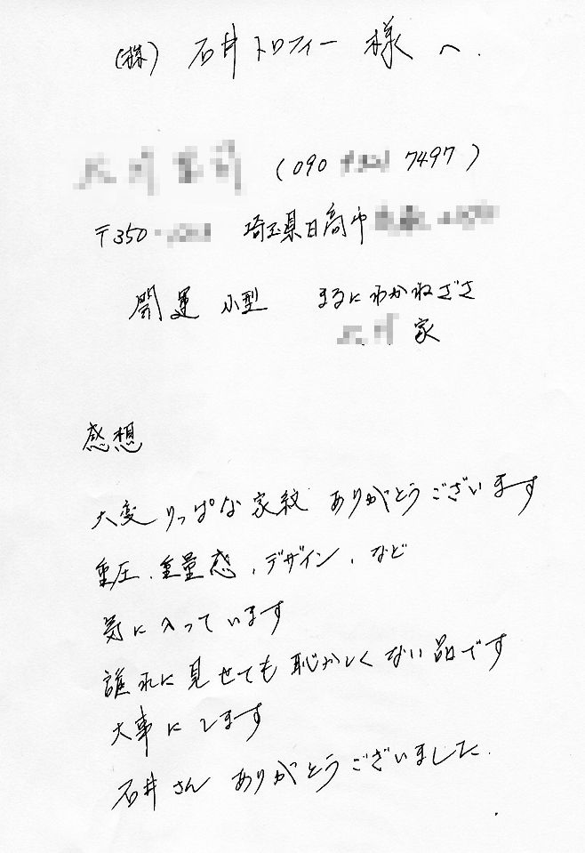 埼玉県日高市 S.O様 【開運-小型】をご購入